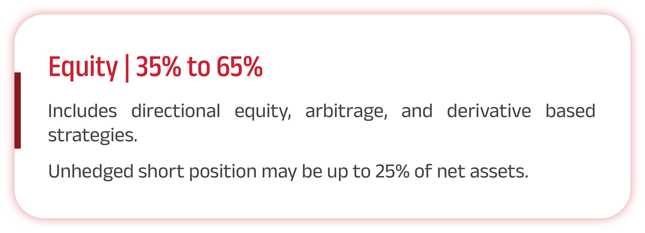 Core allocation to arbitrage and fixed income ensures stability, while exposure to equities enhances the growth potential of the portfolio
