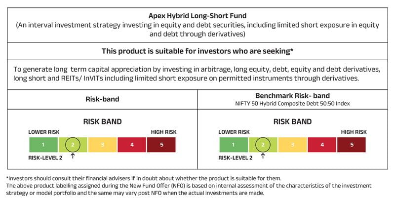APEX HYBRID LONG-SHORT FUND is an interval investment strategy that integrates equity, arbitrage and fixed income within a coordinated structure. It has the flexibility to adjust market exposure as conditions evolve, while operating within a regulated framework. The approach is designed to balance participation with discipline across market cycles.